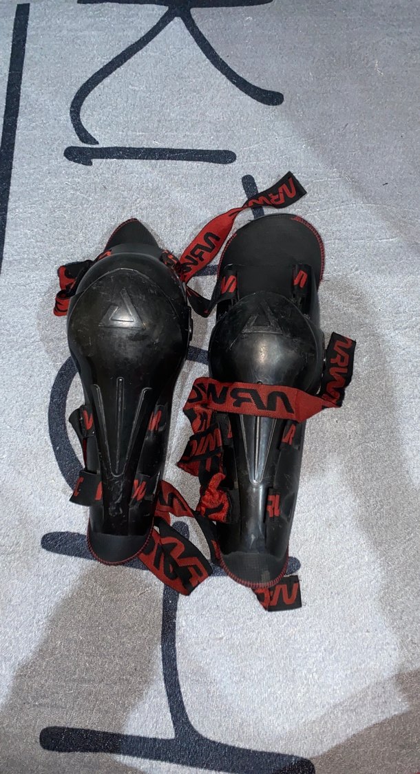 Kauçuk malzemeden siyah desenli motosiklet dizlikleri, cırt cırtlı kayışlarla grunge punk tarzında sağlam koruma sağlar. ️