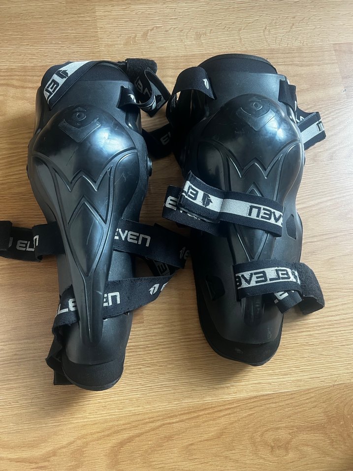 Siyah desenli, kauçuk malzemeden motosiklet dizlikleri, Velcro bantlarla sağlam tutuş ve koruma sağlar. Biker ve athleisure tarzına uygundur. ️