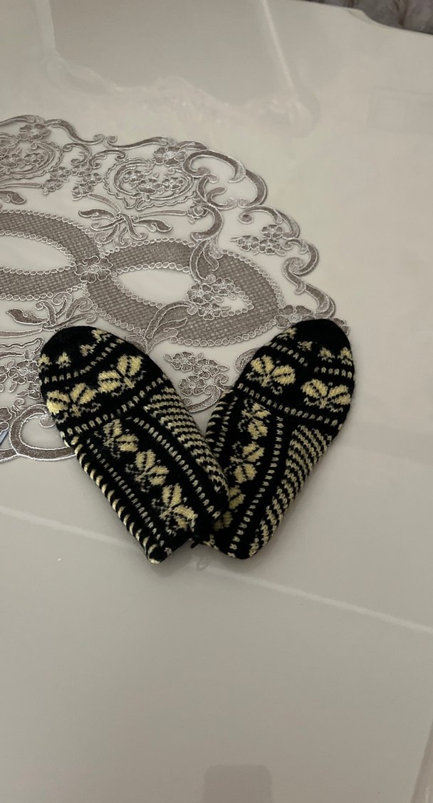 Siyah renkli, çiçek desenli örgü kadın patik. Bohem ve retro tarzda, sıcak ve rahat bir kullanım sunar. Kullanılmamıştır