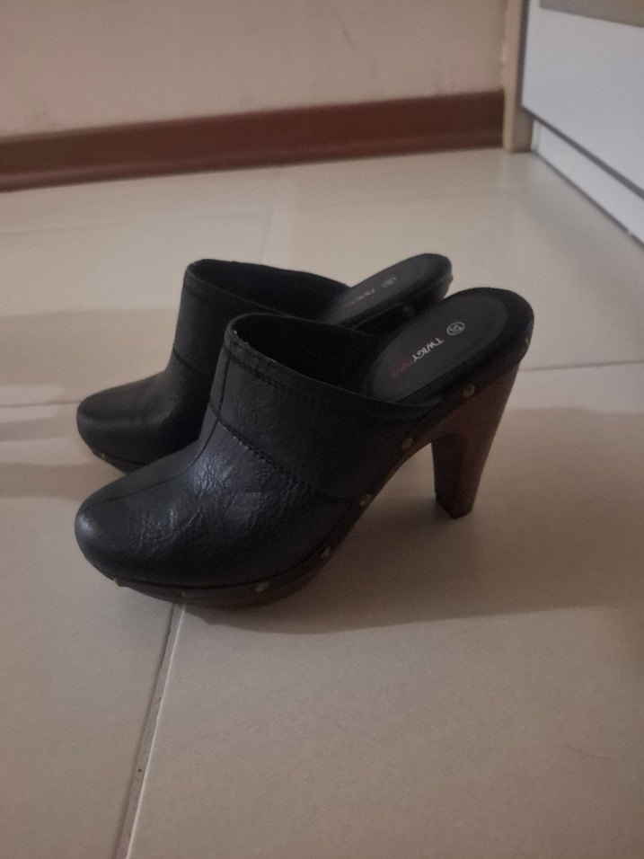 Siyah Desenli Platform Topuklu Kadın Terlik