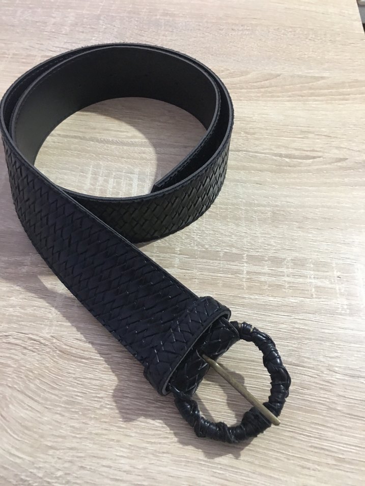 Siyah suni deri kemer, örgülü tasarımı ve yuvarlak dokulu tokasıyla koyu goth tarzını Paris havasıyla yaşatıyor. Uzunluk 97 cm dir.
