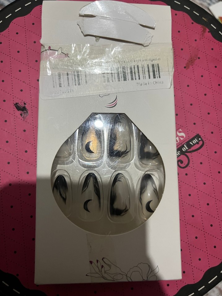 Siyah, koyu desenli tırnak. temudan almıştım uzun parmaklara daha çok yakışır. minil törpü ile beraber