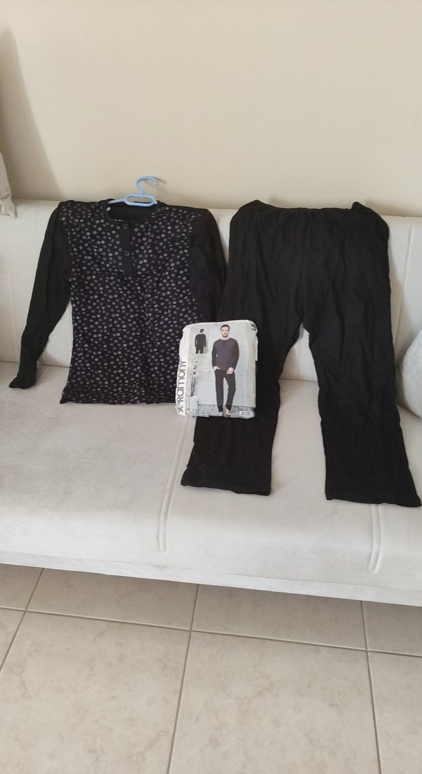 Fitted kesim, uzun kollu, midi boyda siyah desenli erkek pijama takımı, rahat ve şık yenı, hıc kullanılmamıştır.