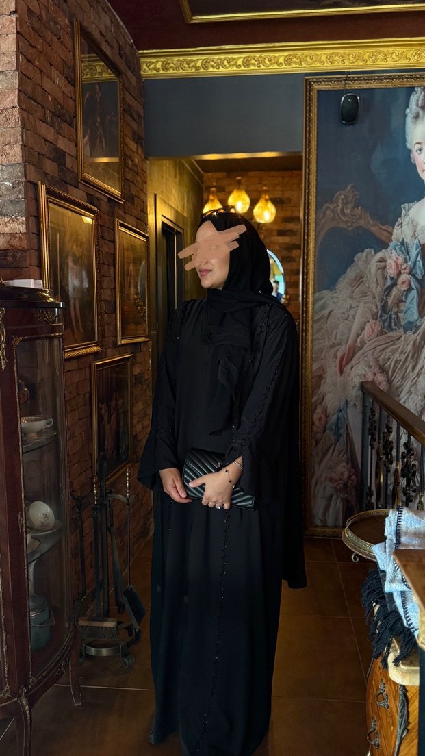 Siyah Desenli Uzun Kollu Geniş Kesim Elbise abaya #abaya