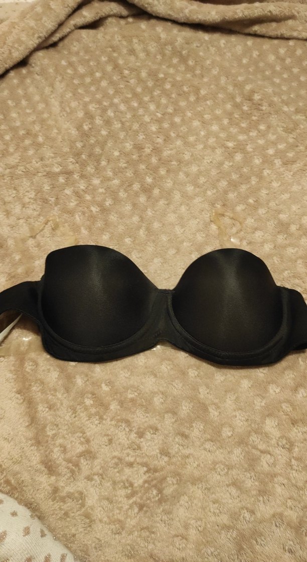 Düz siyah kumaştan, destekli ve midi uzunlukta, rahat ve şeffaf askısı normal askıları bulunan bir sütyendir.(75B)