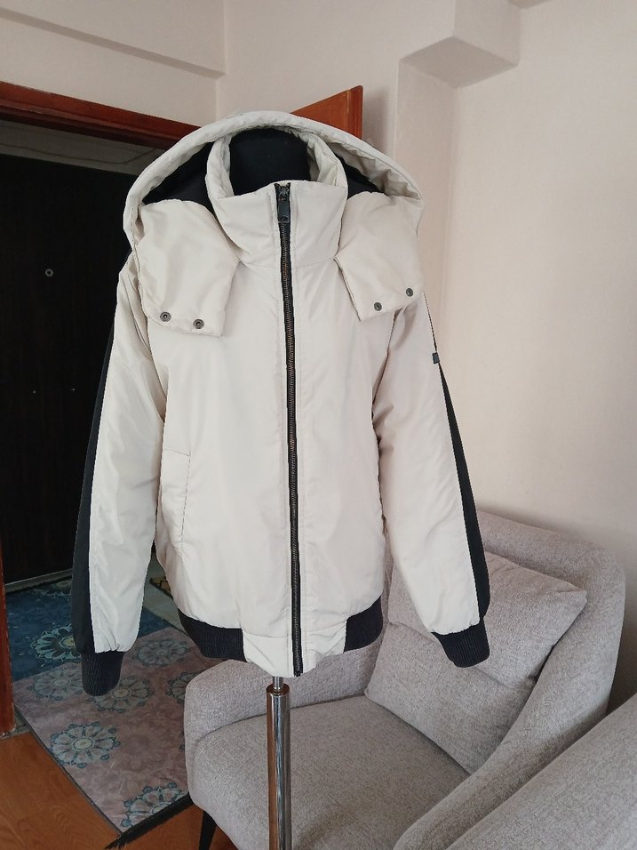 Marka: Mavi Beden: S (Small) - Tam kalıptır. Renk: Şık krem/ekru tonu üzerine kollarında kontrast siyah şerit detaylı. Durum: Çok temiz kullanılmıştır. Herhangi bir leke, yırtık, sökük veya deformasyonu yoktur; sıfır ayarındadır. Kapüşonlu yapısı ve dik yakasıyla hem soğuktan korur hem de stil sahibi bir duruş sergiler. Kol uçlarındaki ve beldeki ribana (lastik) detayları sayesinde rüzgar geçirmez. #Mavi #ErkekMont #Sbeden #ŞişmeMont #TemizÜrün #KremMont #MaviJeans Beden ölçüsü iki kol arası göğüs 61 cm uzunluk 66 cm kol genişliği omuzdan 52 cm koldan genişlik 42 cm kol uzunluğu 62 cm