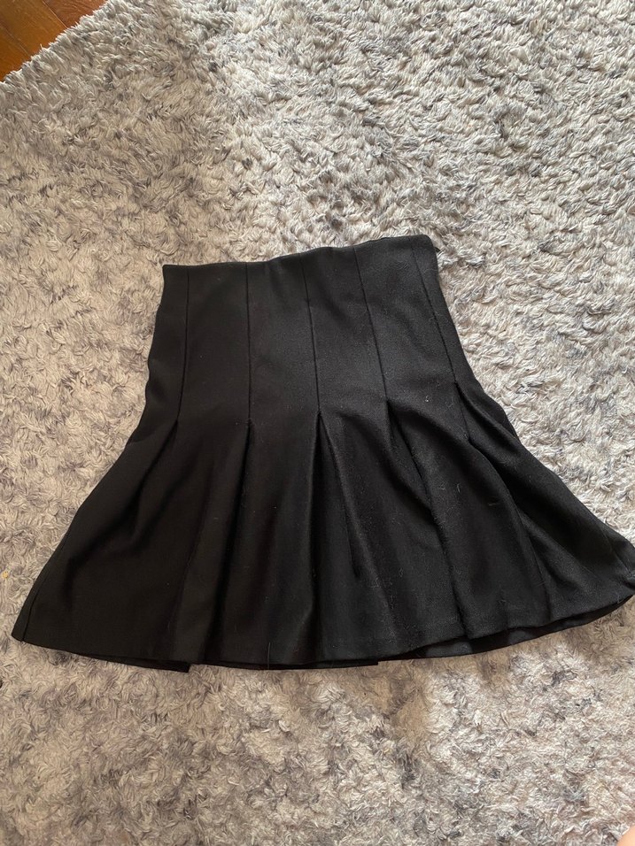 Siyah, sentetik kumaştan yapılmış, kürk detaylı, fitted kesim midi mini etek. Ofis için uygun gotik tarzda. H&m ürünüdür xs s beden uyumlu iç etiketi kesik