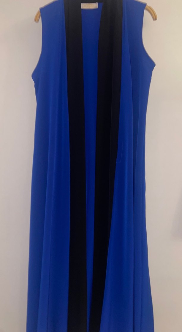 Siyah Detaylı Saks Mavisi Uzun Yelek