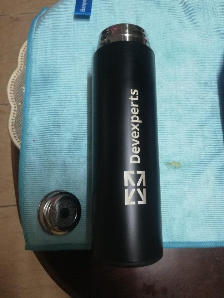 İçecekleri sıcak veya soğuk tutan siyah Devexperts termos matara, güvenli vidalı kapak ve dayanıklı şık tasarıma sahiptir.