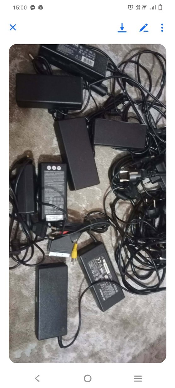 Çeşitli kablolar ve adaptörlerle siyah şarj cihazları seti, farklı cihazlara uyumludur. ⚡