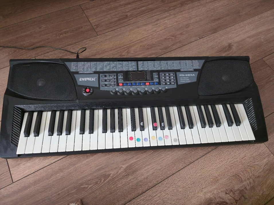 Renkli tuş işaretlerine sahip, dahili hoparlörlü siyah dijital klavye.