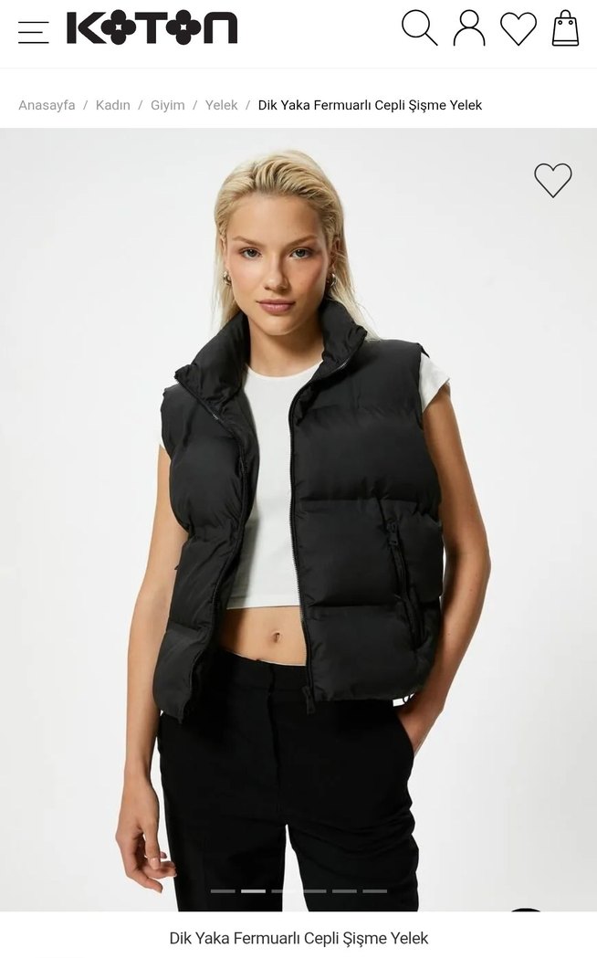 Siyah renkli, dik yakalı ve fermuarlı şişme yelektir. Yumuşak ve sıcak kumaştan, fitted kesimlidir. Günlük kullanıma uygun, rahat ve şık bir parça.