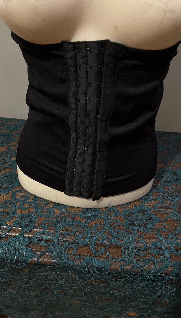 Siyah, dikişsiz ve ön kısmında ayarlanabilir kancalar bulunan, midi boy, vücuda oturan göğüs korsesidir. Düz ve desensiz tasarıma sahiptir. Sırtında demirler mevcut 1-2 kez kullanıldı