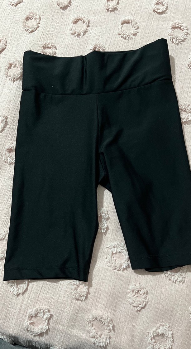 Spor ve sokak stili için tasarlanmış, düz siyah, düz kesim, hamileler için mini şort, yumuşak sentetik kumaştan yapılmıştır.