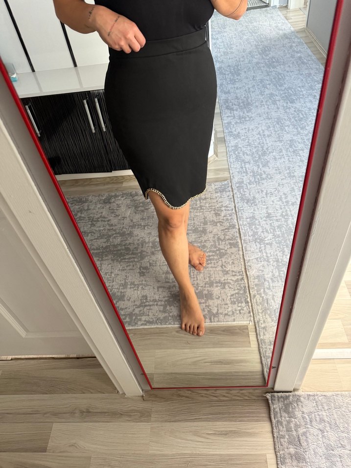 Siyah Diz Üstü Yırtmaçlı Mini Etek