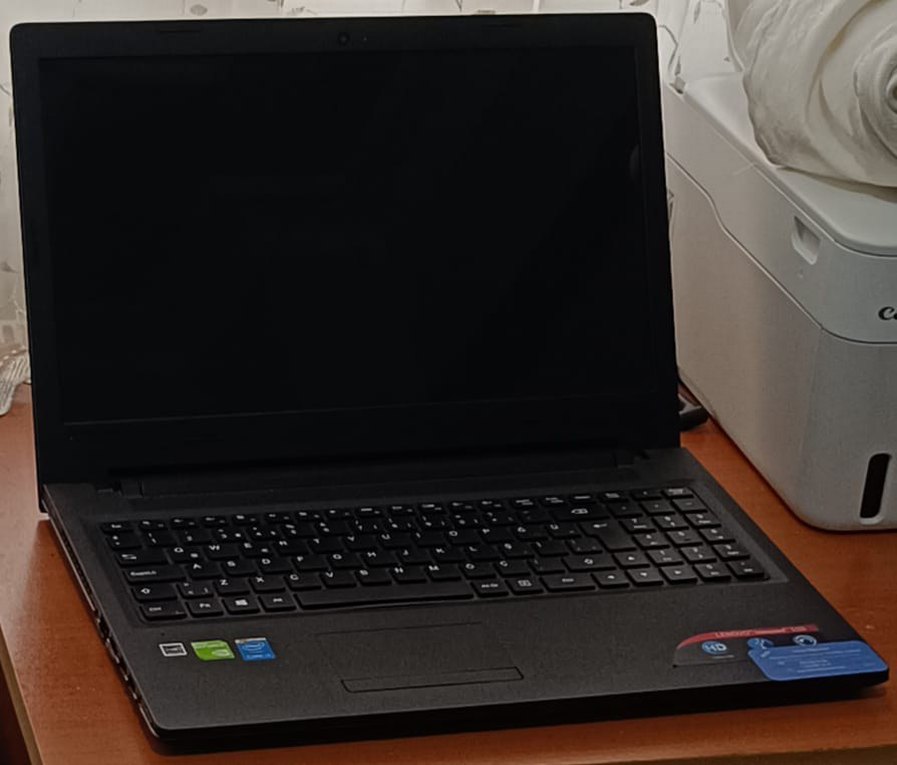 Tam klavyeli ve şık tasarımlı siyah dizüstü bilgisayar. Donanım özelliklerini gösteren birkaç çıkartma bulunur. SSD si i3 Ile yükseltilmiştir