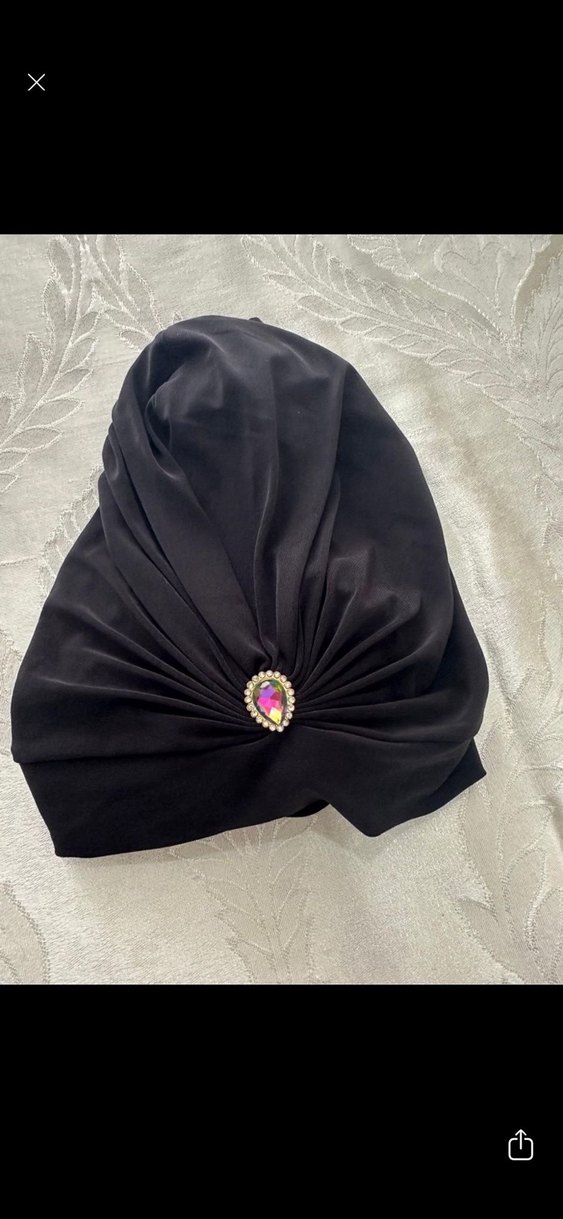 Satenimsi siyah kadın şalı, dökümlü tasarımı ve süslü broş detayıyla. Glamour ve retro goth tarzında, bohem ve hippie görünüme uygun. Kullanılmadı kutulu