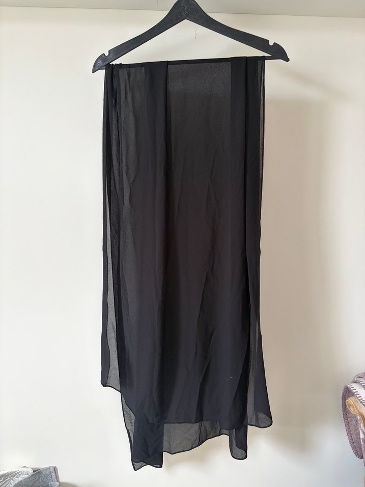 Siyah Dökümlü Kadın Uzun sarong Siyah, dökümlü ve bol kesim uzun sarong. Satenimsi kumaştan, minimalist gotik tarzıyla ofis kullanımı için uygundur. Yepyeni 2kez kullandım markasını hatırlamıyorum temsili ekledim #sarong #plajgiyim #pareo