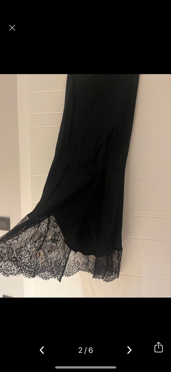 Siyah, dökümlü ve uzun kesimli bu etek, ipeksi kumaşı ve dantel detaylı etek ucu ile gotik romantik akşamlar için uygundur.