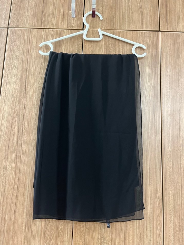 Bu siyah uzun şal dökümlü tasarımı ve düz sentetik kumaştan yapılmıştır. Minimalist ve gotik tarz için uygundur.