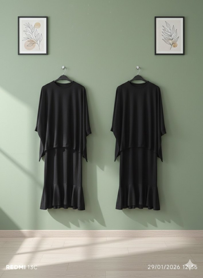 Siyah Dökümlü Uzun üst ve etek takım