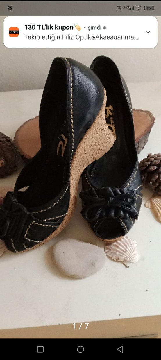 siyah dolgu topuklu, fiyonklu tarzda hakiki deri kadın ayakkabı, romantik akşamlar için uygun. herhangi bir sorun yok yepyeni bir üründür.