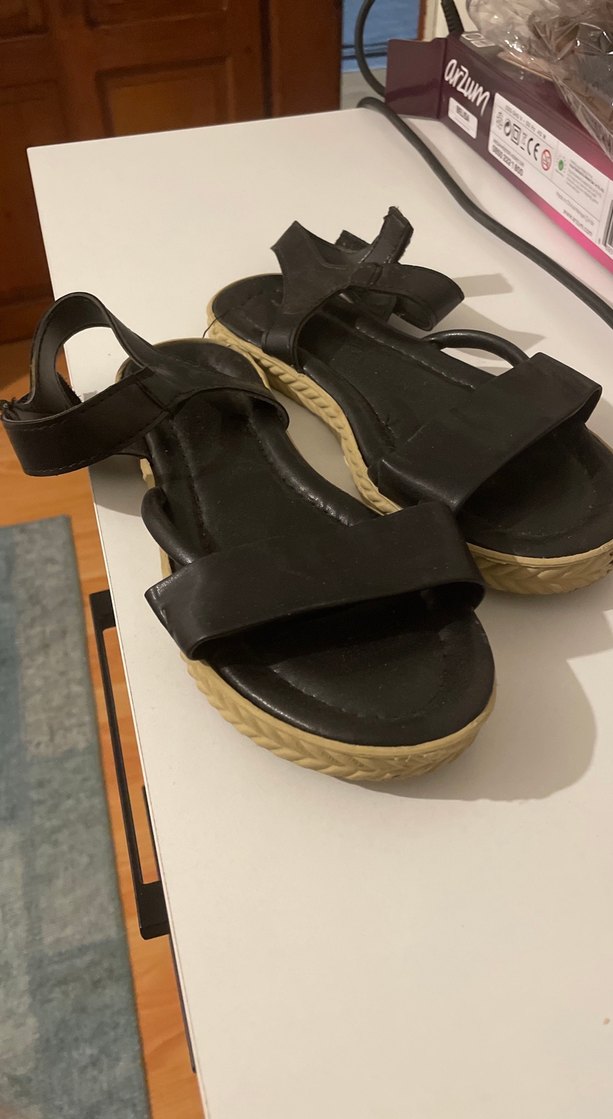 Siyah Dolgu Topuklu Kadın Sandalet