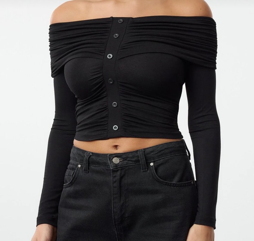 Siyah drape düğme detaylı bluz