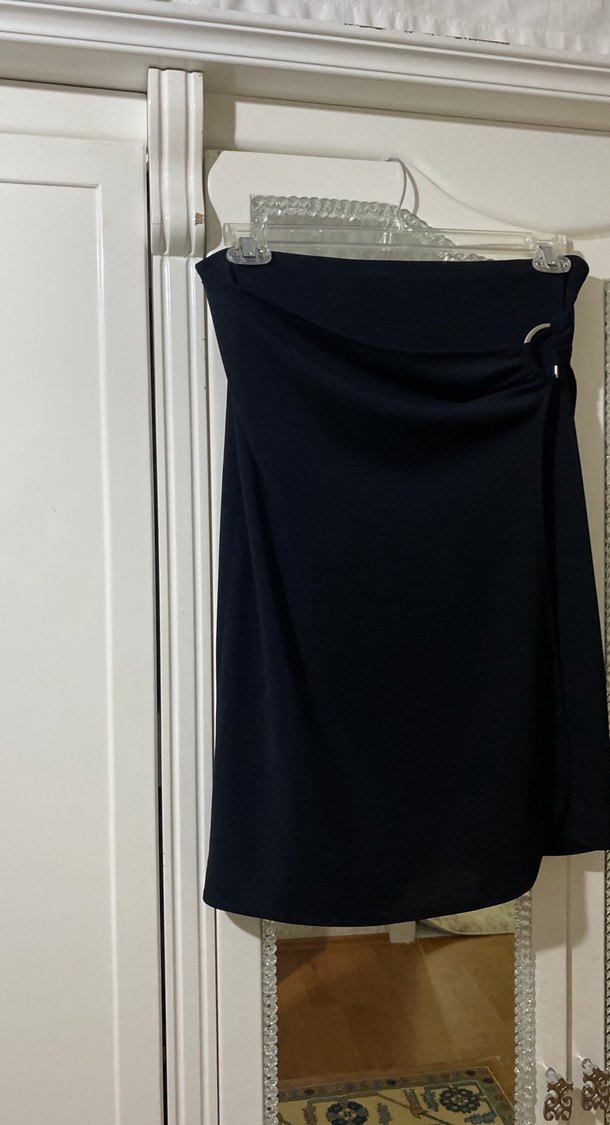 Siyah, drapeli ve satenimsi dokulu, vücuda oturan Minimalist ve gotik tarzıyla ofis için uygundur. 38-40