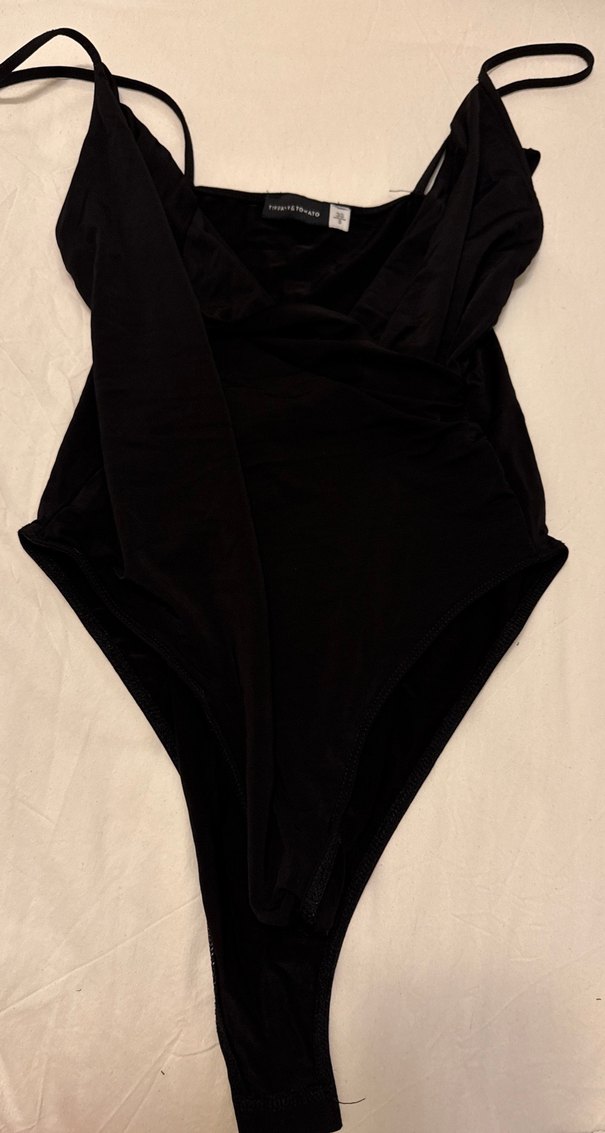 Drapeli tasarıma sahip, askılı ve midi boyda siyah, vücuda oturan kadın mayosu. Gotik tarzda ve partiler için uygun.