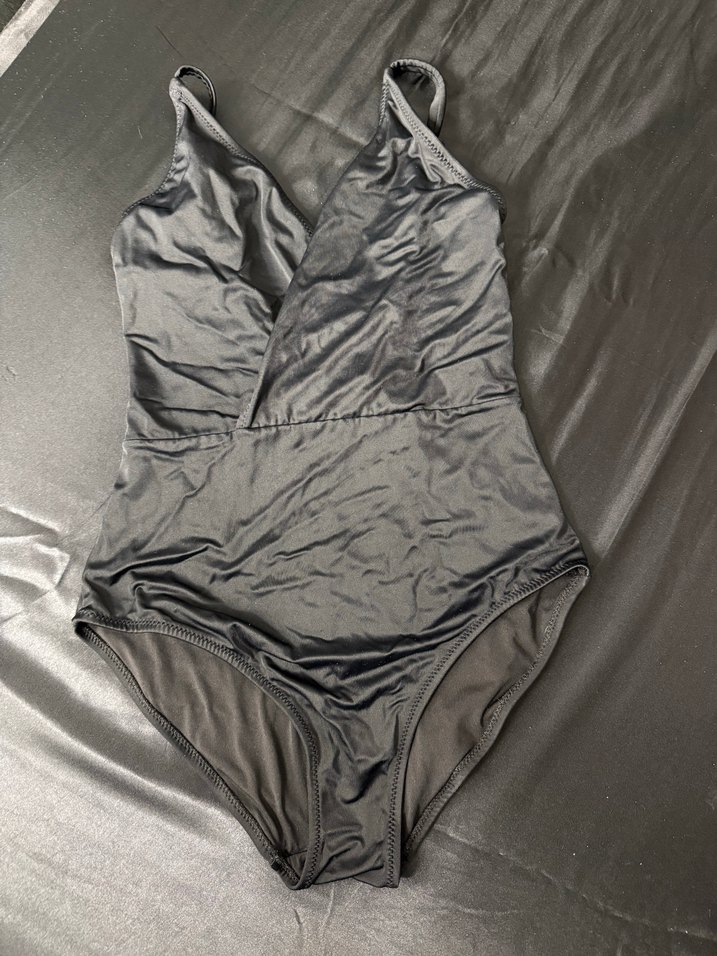 Gri renkte, drapeli ve ince askılı, oturan kesime sahip kadın mayo. Goth ve athleisure tarzını günlük kullanıma uygun şekilde birleştirir.