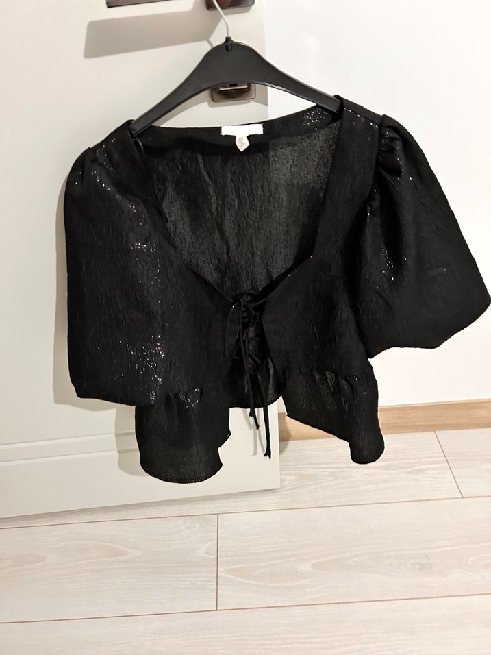 Siyah renkli, sentetik kumaştan yapılmış, drapeli ve nakışlı detaylara sahip, salaş kesim mini kadın bluz. Askılı ve halter yaka tasarımıyla dikkat çekiyor. Bi defa tek giyildi özel günler içinde uyundur.