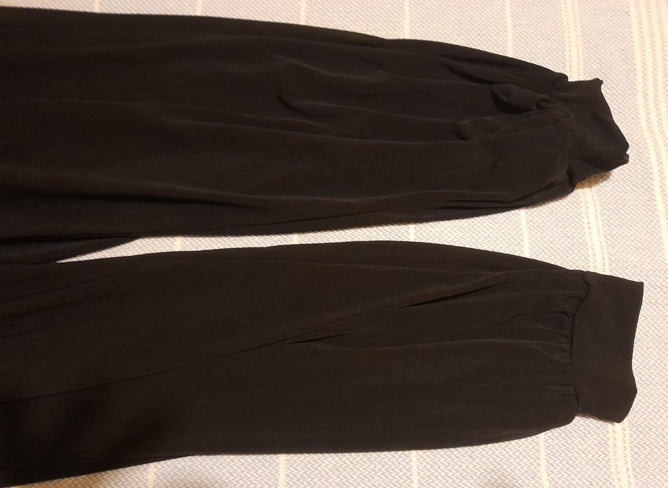 Siyah, drapeli ve ince dokulu kumaştan yapılmış,bol kesim kadın pantolonu. Günlük sokak modasına uygundur.