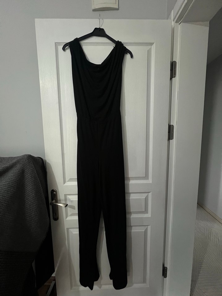 Siyah Drapeli Kadın Uzun Tulum