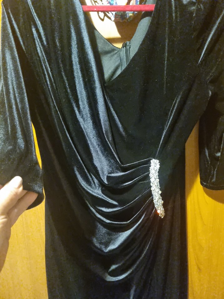 Siyah, drapeli, V yakalı ince kadife taş detaylı elbisem efsane görünür üzerinizde kaçırmayın
