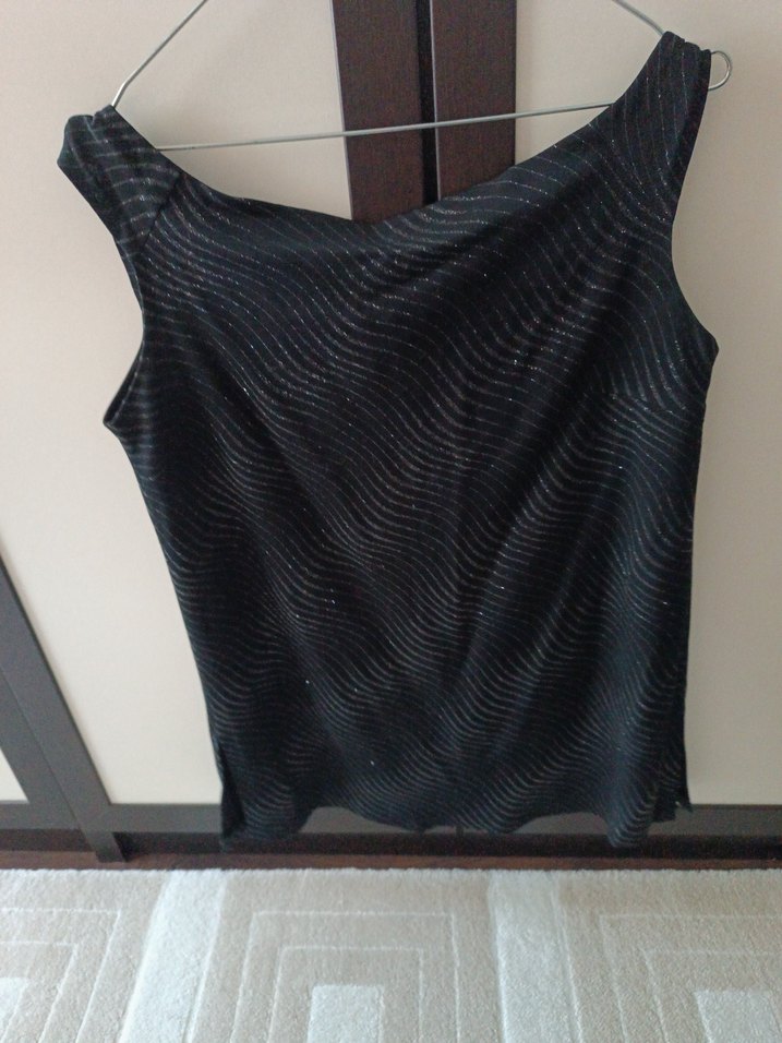 Drapeli, kolsuz, tek renk siyah bluz, tekne yaka ve kısa boyu ile modern ofis şıklığı sunar. Sentetik kumaştan üretilmiştir.