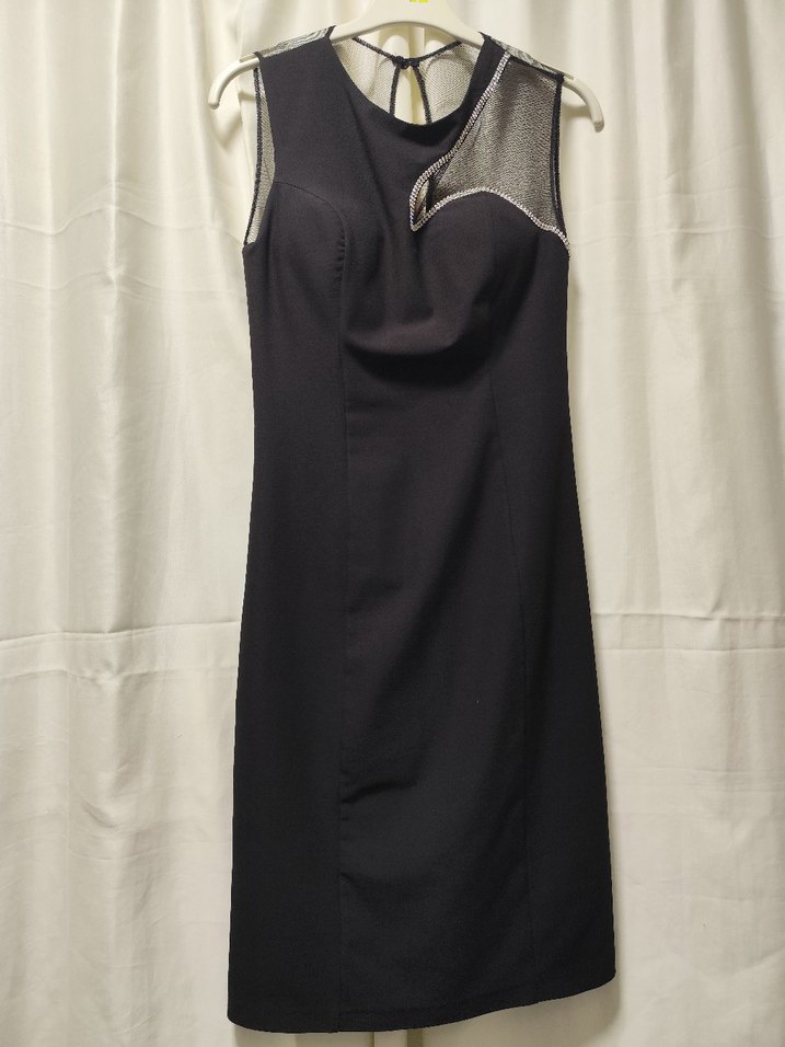 Kolsuz, drapeli detaylı siyah uzun elbise. Regular kesim ve askısız yaka ile ofis için uygun şıklık sunar.