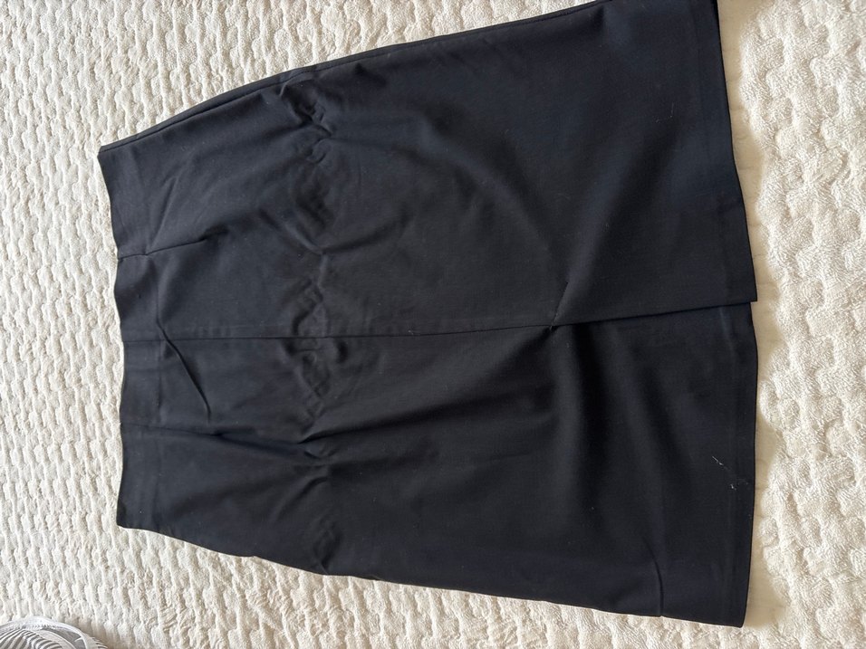 Siyah midi etek üzerindekiler askı izidir drapeli tasarımı ve rahat kesimiyle, ofis kullanımı için uygun, sade ve minimalist tarzda sentetik kumaştan üretilmiştir.