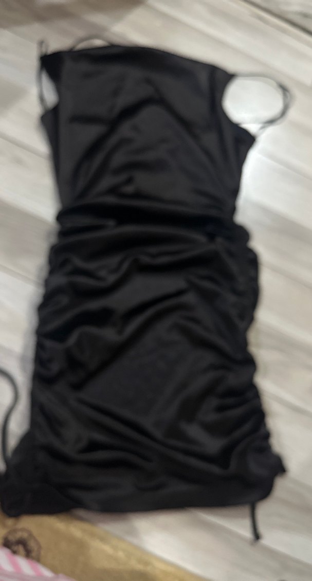 Siyah drapeli midi uzunlukta, tek parça, kolsuz, tek renk, gotik tarzda, cesur kesim abiye elbise.