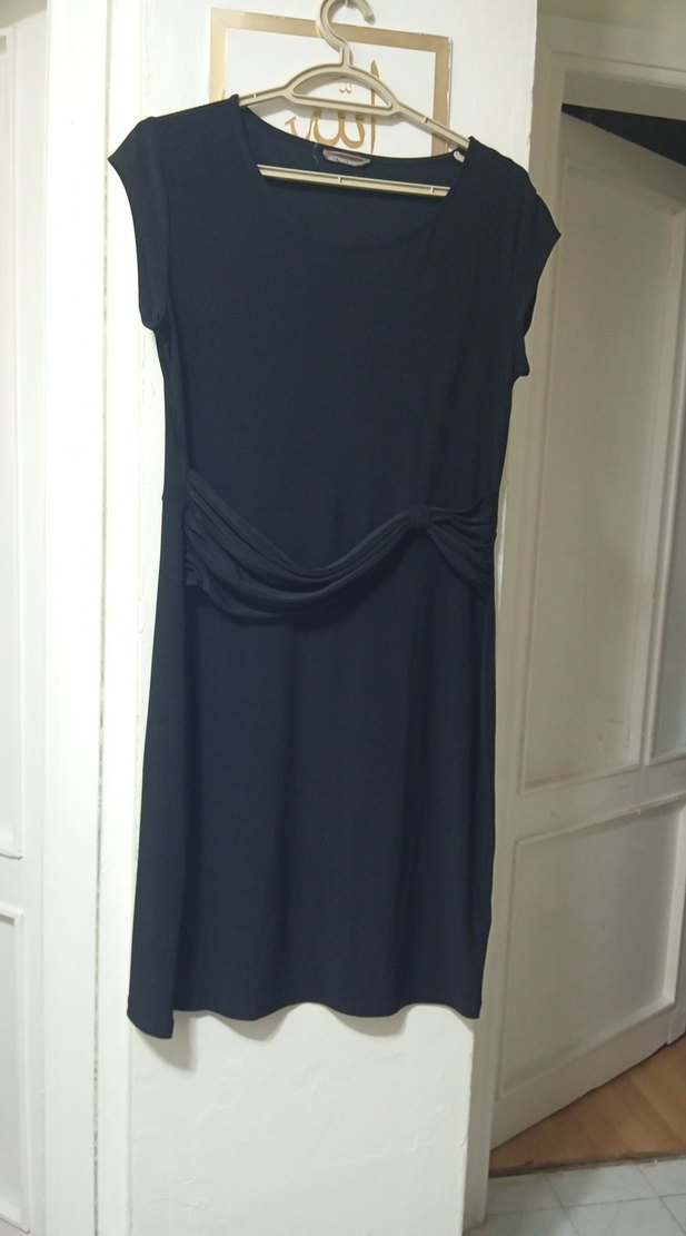 Siyah Drapeli Midi Hamile Elbisesi