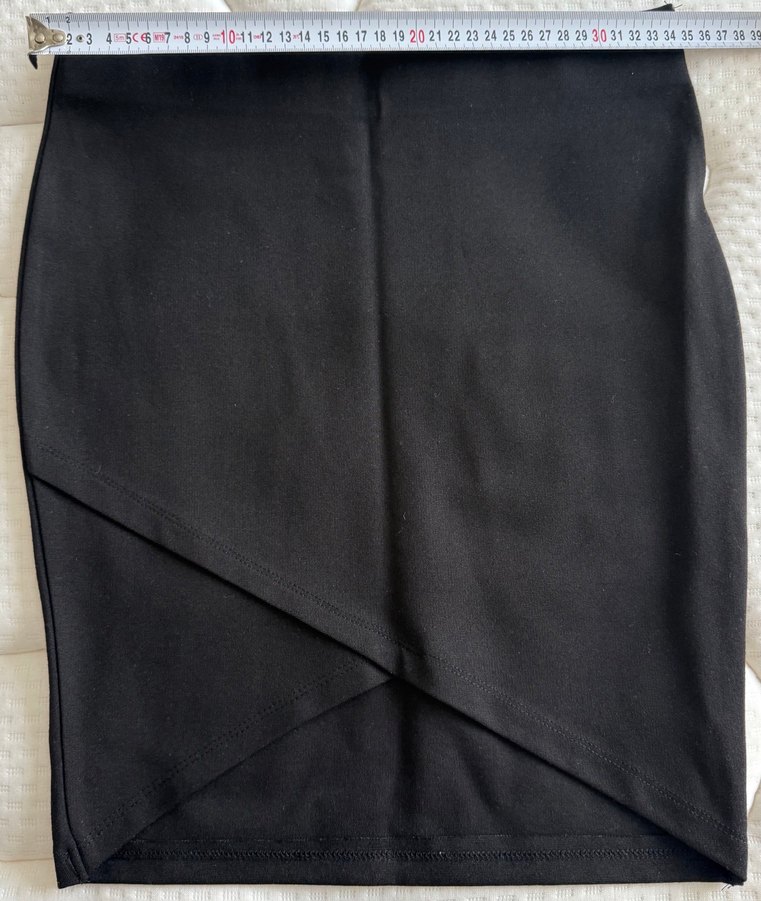 Dar kesim, drapeli tasarıma sahip siyah hamile eteği. Midi boyda, minimalist gotik tarzıyla günlük kullanıma uygun.