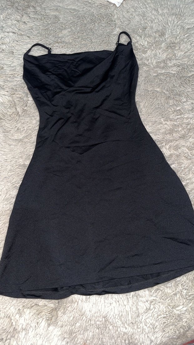 Siyah renkte, drapeli ve kayık yaka detaylı, kolsuz midi boy, vücuda oturan kadın abiye elbisedir. Minimalist gotik tarzıyla açık hava etkinliklerine uygundur.