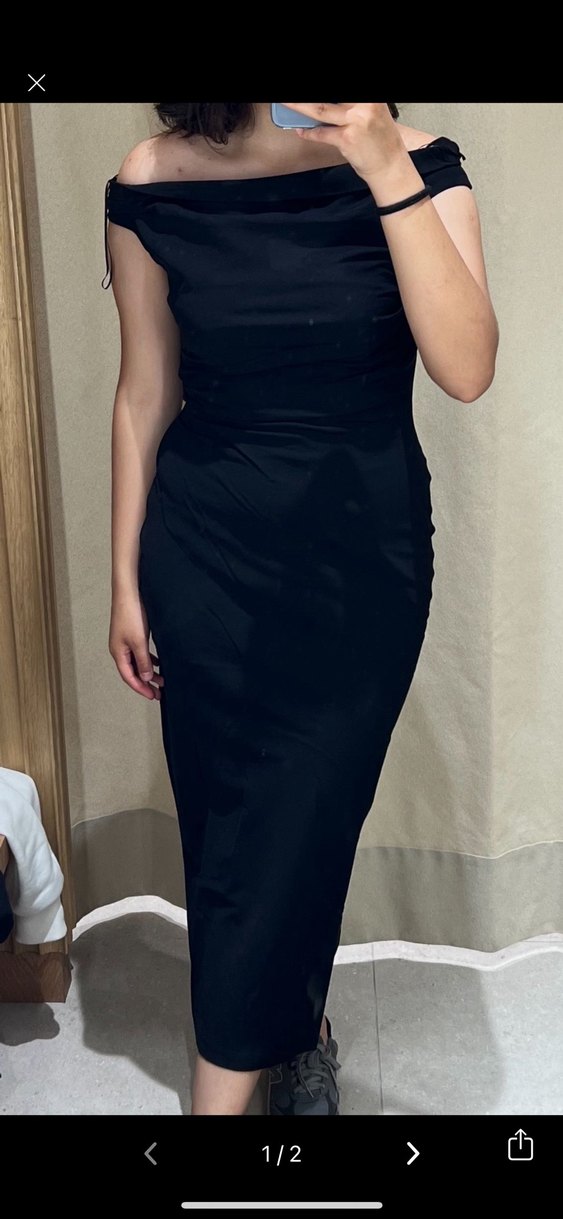 Siyah Drapeli Midi Kalem Elbise mango klasik