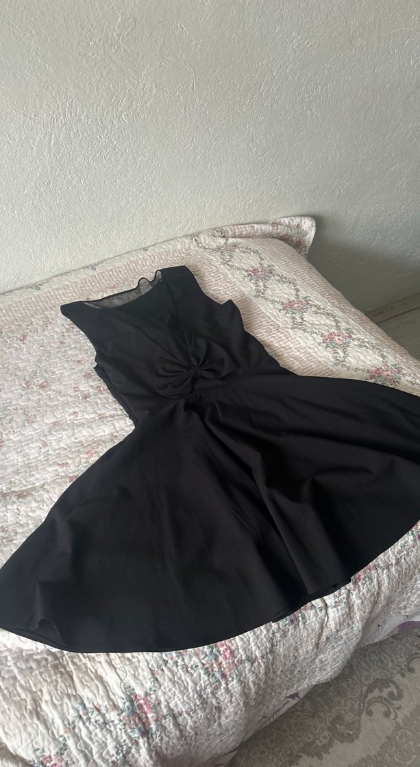 Drapeli, V yaka ve kolsuz kesime sahip, klasik şıklıkta siyah midi abiye elbisedir. Düğünler için uygundur.