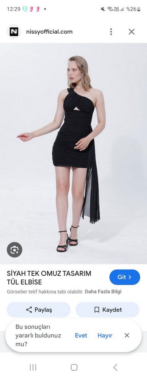 Siyah renkte, drapeli ve V yakalı, ince askılı, midi boy, vücuda oturan kadın elbisesi, cesur parti tarzları için uygundur.