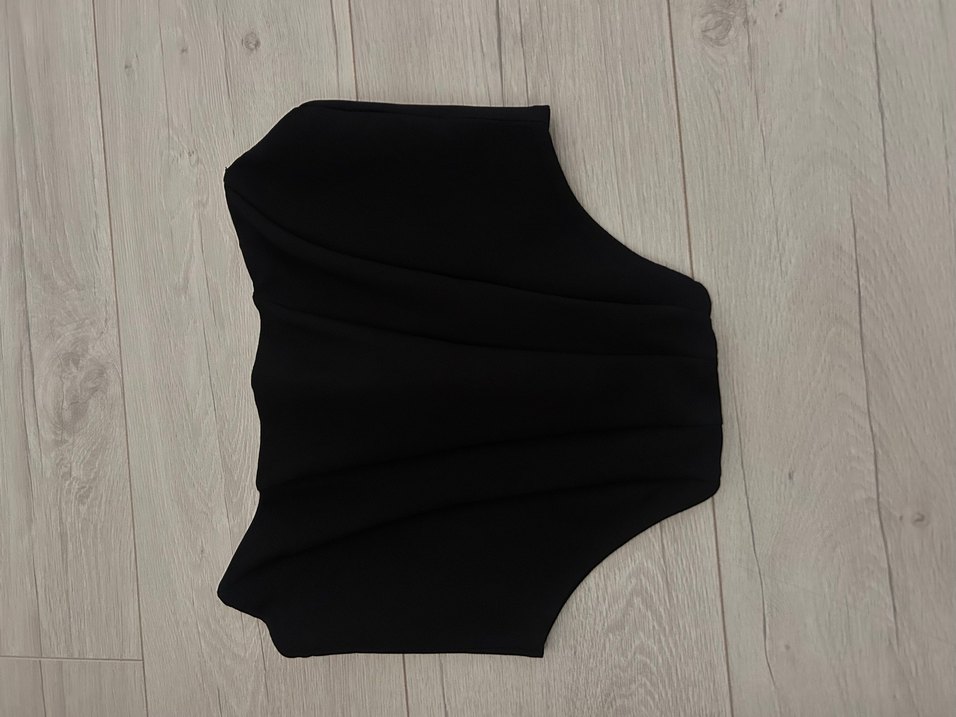 Siyah , sentetik kumaştan yapılmıştır. Fitted kesimi ve kısa boyu ile avant-garde tarzını günlük kullanıma taşır.