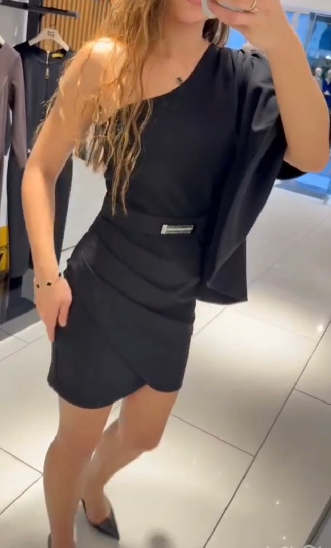 Siyah kısa tek kollu mini elbise cesur ve modern bir tarz sunar, romantik buluşmalar için uygundur.
