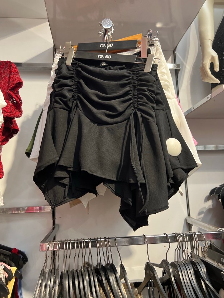 Sentetik kumaştan, gevşek kesim ve drapeli tasarıma sahip siyah mini etek. Avant-garde baskılı deseniyle günlük kullanıma uygun. Hiç kullanılmadı xs - s uyumlu