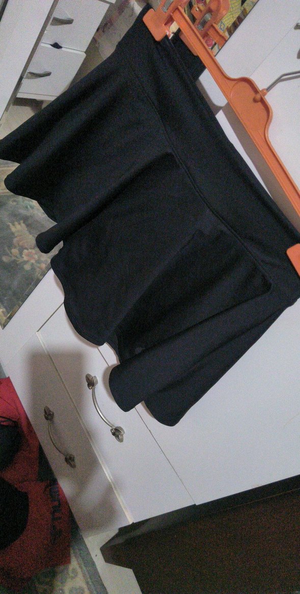 Siyah, drapeli, vücuda oturan mini etek. Yumuşak sentetik kumaştan üretilmiş, midi uzunluğunda, günlük sokak stili için uygun.