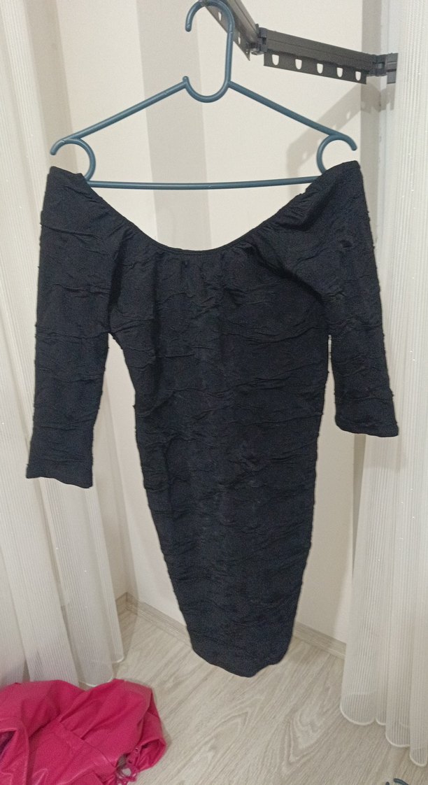 Siyah Drapeli Mini Gece Elbisesi